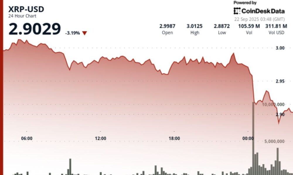 Credit : www.coindesk.com XRP has handed a unstable 24-hour session from September 21 at 03:00 to 22 September at 02:00, and hurled 3.46% between a $...