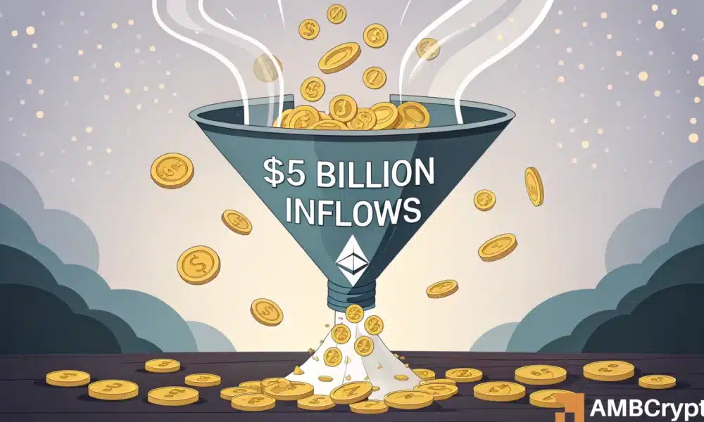 • Ethereum ETFs entice greater than $ 5 billion in influx, indicating a rising institutional confidence