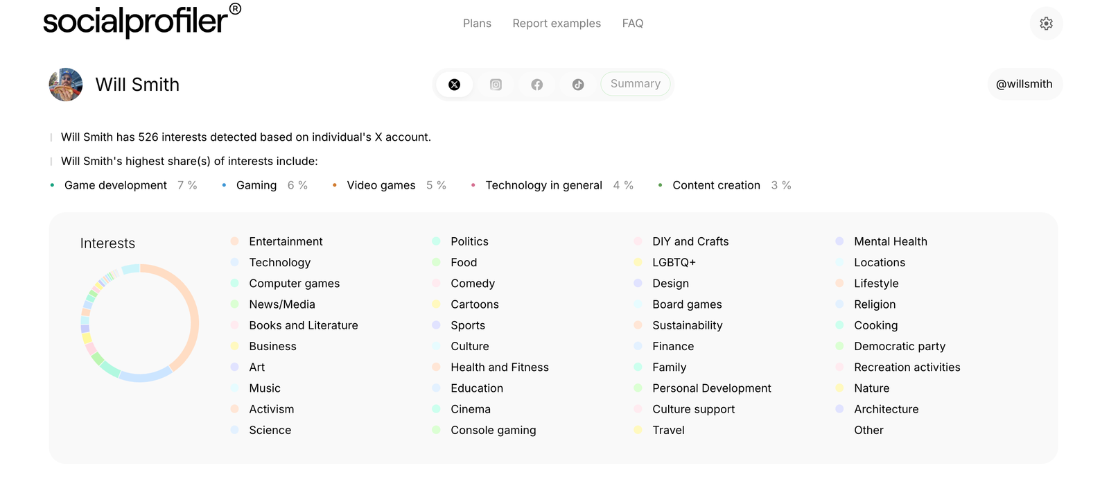 Socialprofiler’s social media evaluation by Will Smith primarily based on his exercise on X.